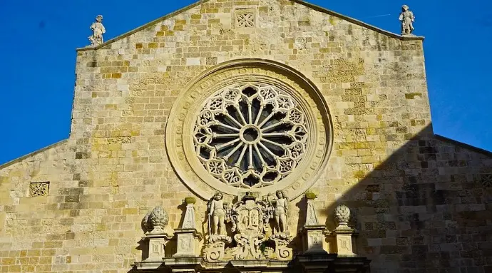La Catedral de Santa María de la Anunciación es uno de los monumentos más emblemáticos de Apulia. Construida en el siglo XI, es célebre por su excepcional mosaico medieval del suelo, que representa el Árbol de la Vida, así como por la Capilla de los Mártires, dedicada a los 800 habitantes de Otranto fallecidos en 1480.