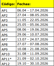 *Por favor tengan en cuenta que el recorrido AP11 (21.09 – 02.10.2026) tendrá un precio diferente, debido a la Oktoberfest en Múnich.