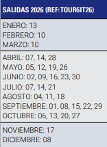 - Excursiones opcionales.