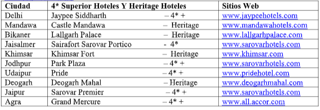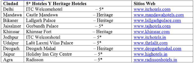 - Guías locales de habla hispana en cada ciudad durante el recorrido turístico excepto en Mandawa, Khimsar y Deogarh.