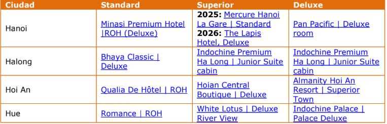 - A partir del 1 de enero de 2026, el Hotel Lapis será sustituido por el Mercure Hanoi La Gare.